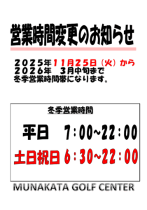 冬季営業時間のお知らせ