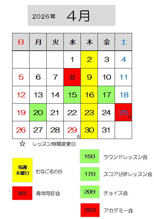 4月の予定表一覧です